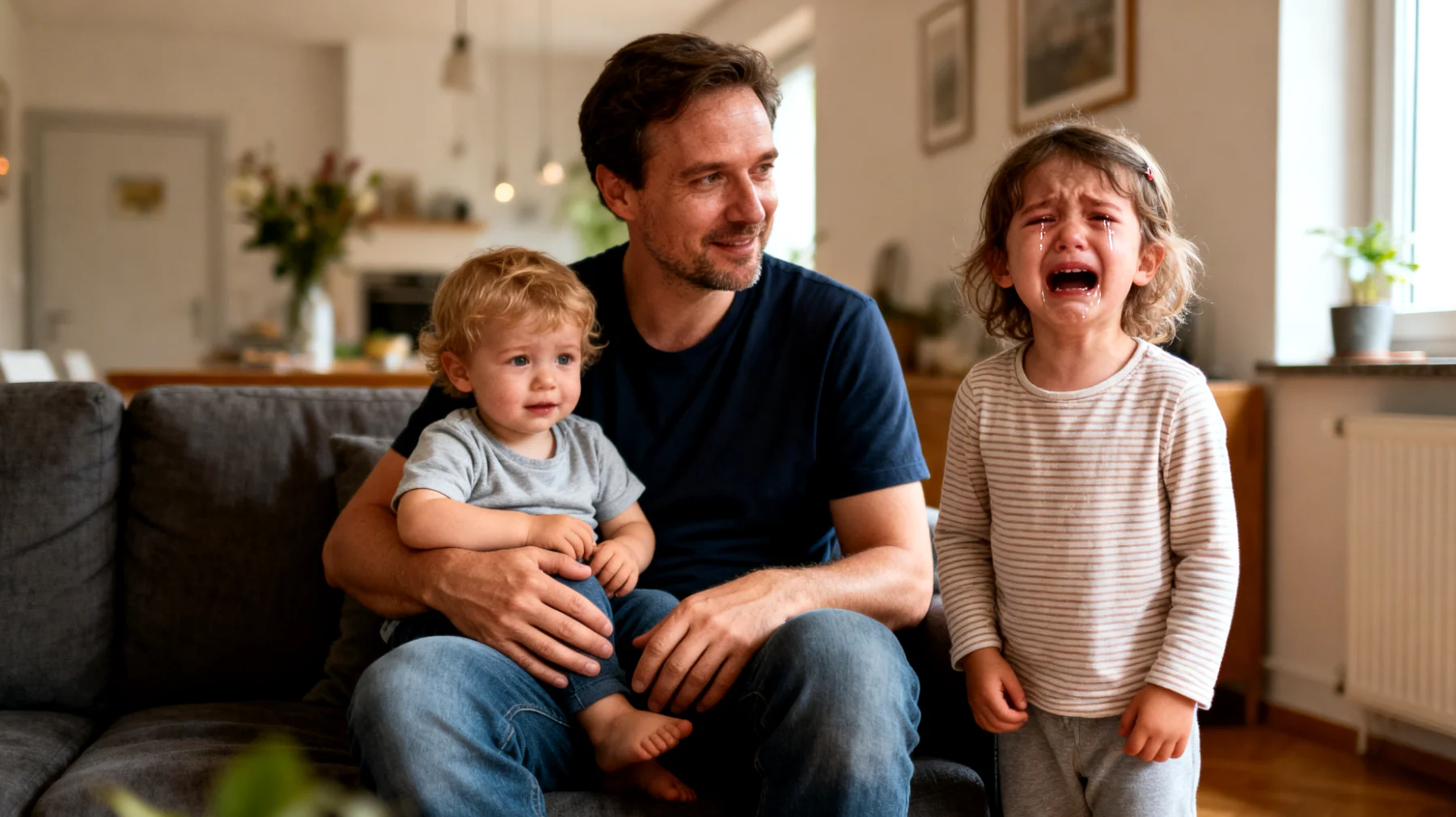 Wenn das eigene Kind laut weint, weil der Bruder oder die Schwester gerade auf dem Schoß sitzt – dieser Moment trifft Väter oft wie ein Messerstich. Nicht weil man es falsch macht, sondern weil man plötzlich merkt: Gleichheit und Gerechtigkeit sind in einer Familie nicht dasselbe. Und genau diese Unterscheidung ist der Schlüssel, um mit Geschwisterrivalität wirklich umgehen zu können.