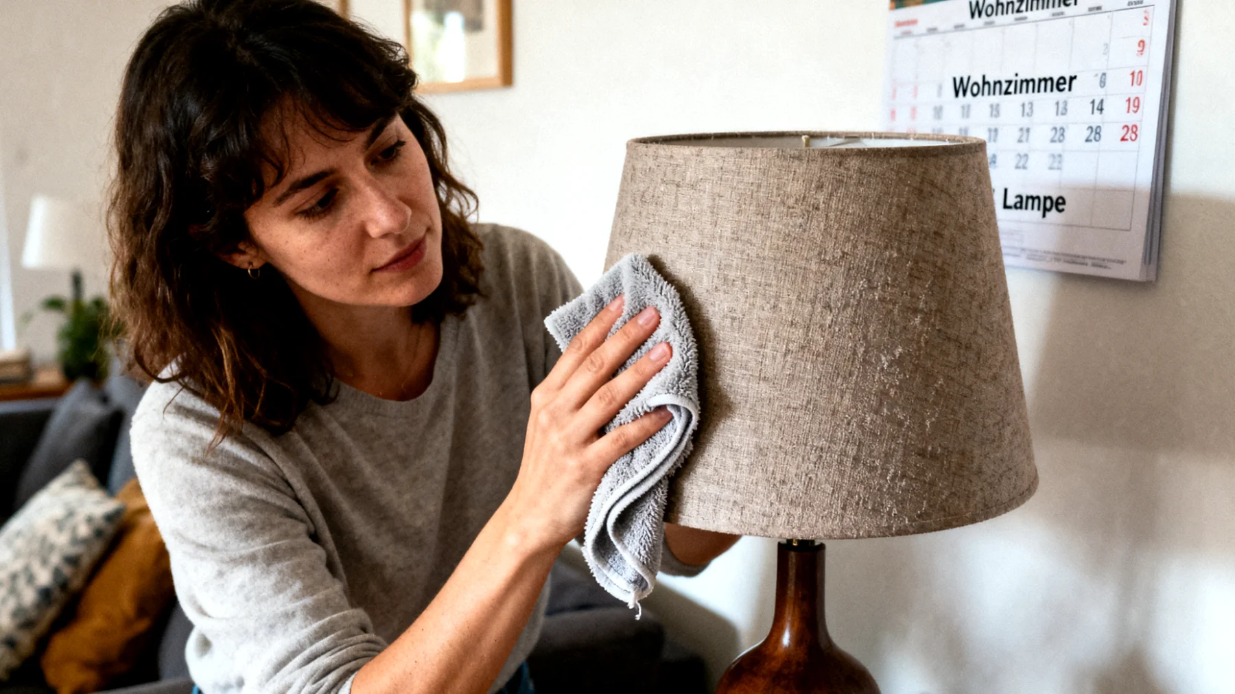 Hinzu kommt die Position der Lampe im Raum. Tischlampen stehen oft auf Arbeitsflächen, Nachttischen oder Kommoden – also genau dort, wo wir uns häufig aufhalten und durch unsere Bewegungen Staub aufwirbeln. Jedes Mal, wenn wir ein Kissen aufschütteln, ein Buch aus dem Regal nehmen oder Kleidung wechseln, setzen wir Tausende mikroskopisch kleine Partikel frei, die sich letztlich auf der nächstgelegenen Oberfläche niederlassen.